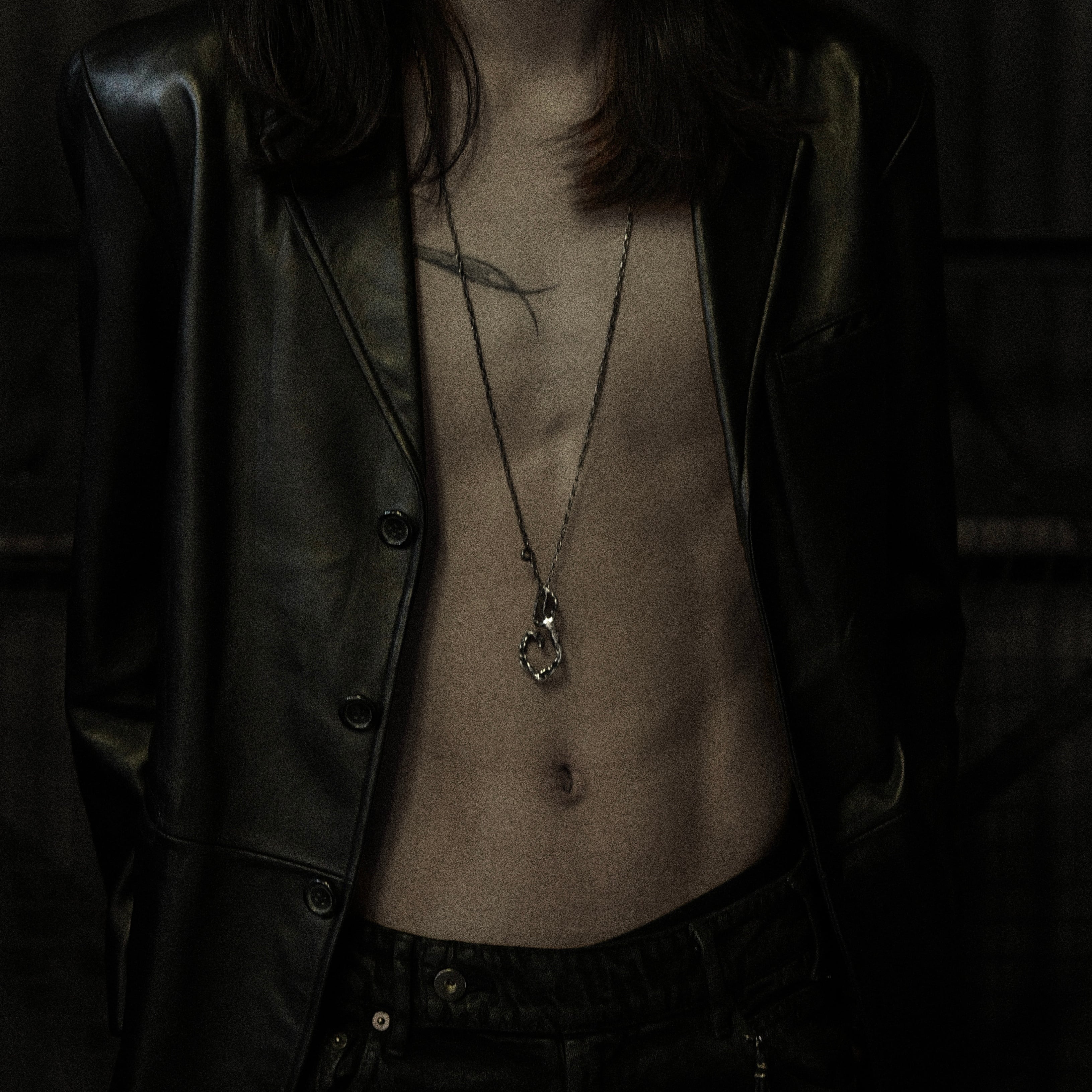 チェーンネックレスをベースに、VAINONのテーマに沿った“歪”のニュアンスを落とし込み、整え切らない輪郭を完成として扱いました。
